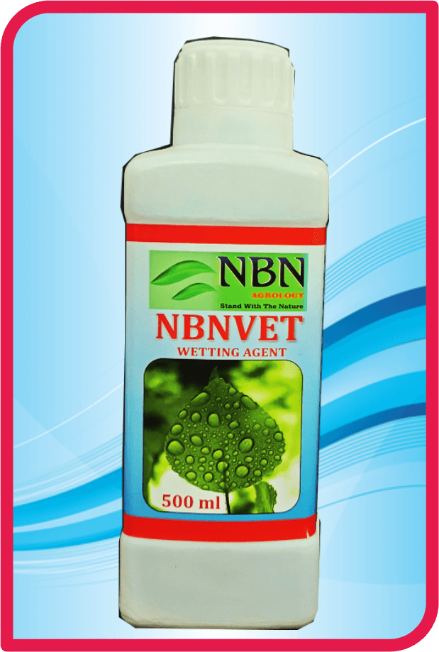 NBNVET is a quality wetting spreading agent. It helps plants to absorb agrochemicals and hence their effectiveness. It can be mixed with any insecticide, pesticide, fungicide or other agrochemicals to get the best result out of them. It has an excellent wetting property. It helps in uniform distrubution. It increase penetration, helps in quick drying. Enhance sticking power.