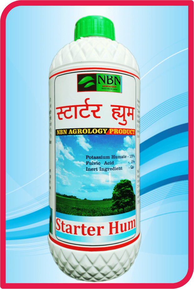 Starter hum liquid improves soil structure. promote up-taking of nutrients. Timely seed germination. Increase chlorophyll synthesis. Improve water holding capacity. Increase aeration. It is compatible with almost all pesticide. Improve crop yield. It develops the root.